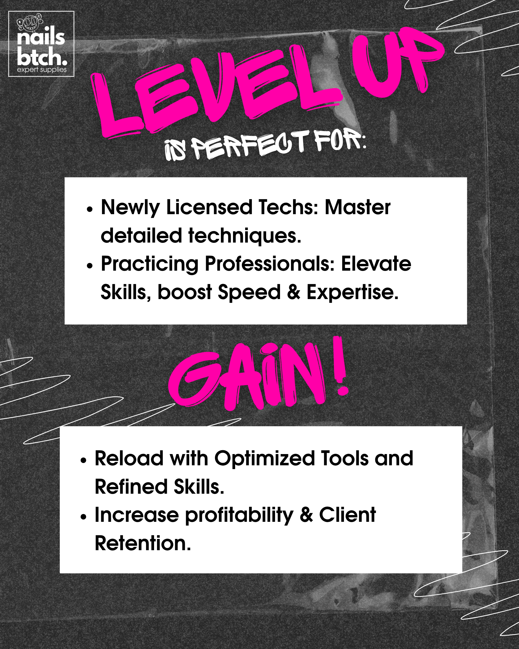 Spots are limited! This course is designed for intermediate to advanced nail technicians; previous experience is required, not for beginners.