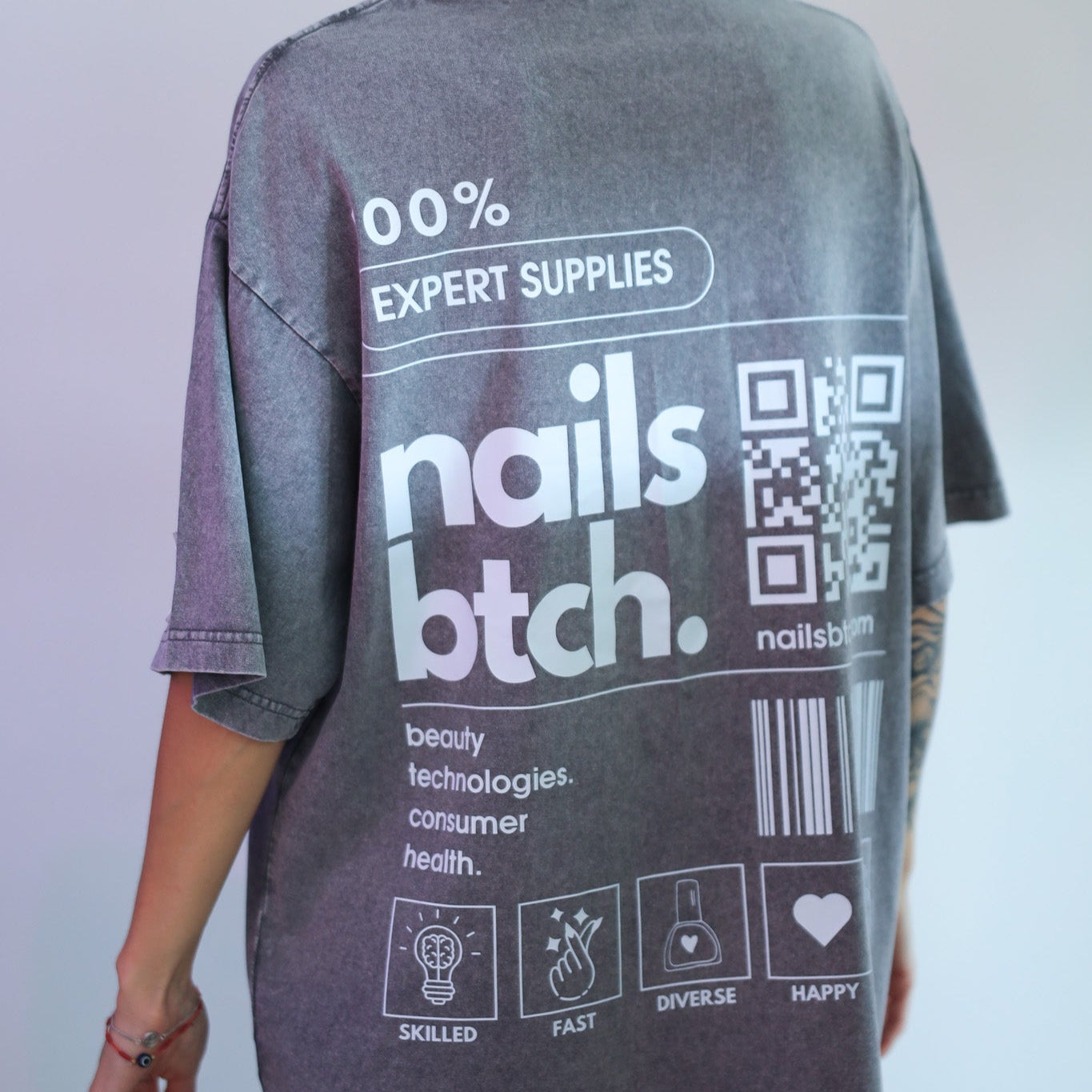 Rock your nail game with the Nails Btch T-Shirt. Featuring the bold Nails Btch logo on the back, this tee is a must-have for every nail enthusiast. Crafted from 100% high-quality dense cotton, it offers all-day comfort and durability, whether you’re in the salon or out on the streets.